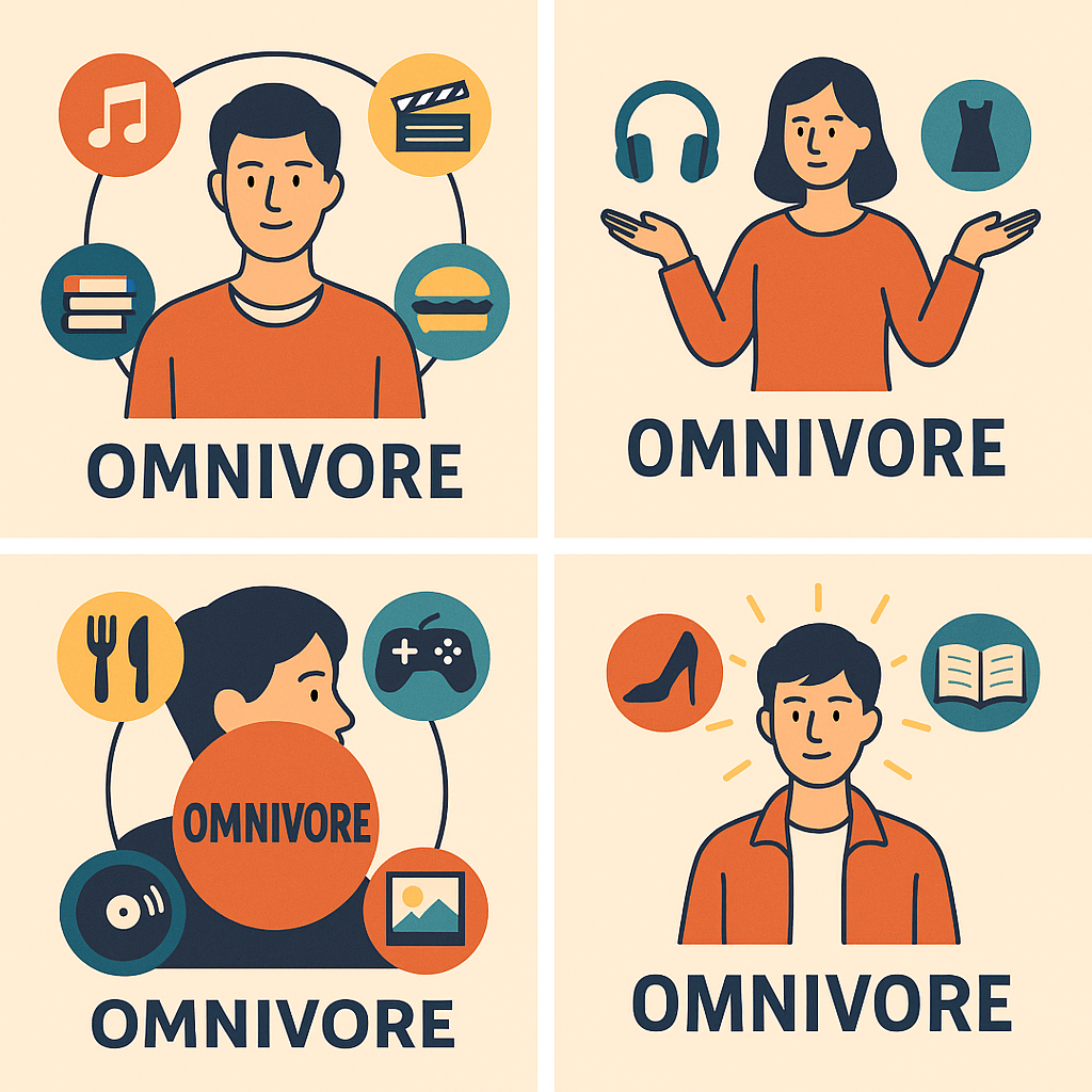 - 소비 분석: A씨는 특정 문화나 취향에 얽매이지 않고, 음악·패션·푸드 등 다양한 분야에서 자신만의 개성을 찾으려는 옴니보어 소비자의 전형적인 사례입니다.